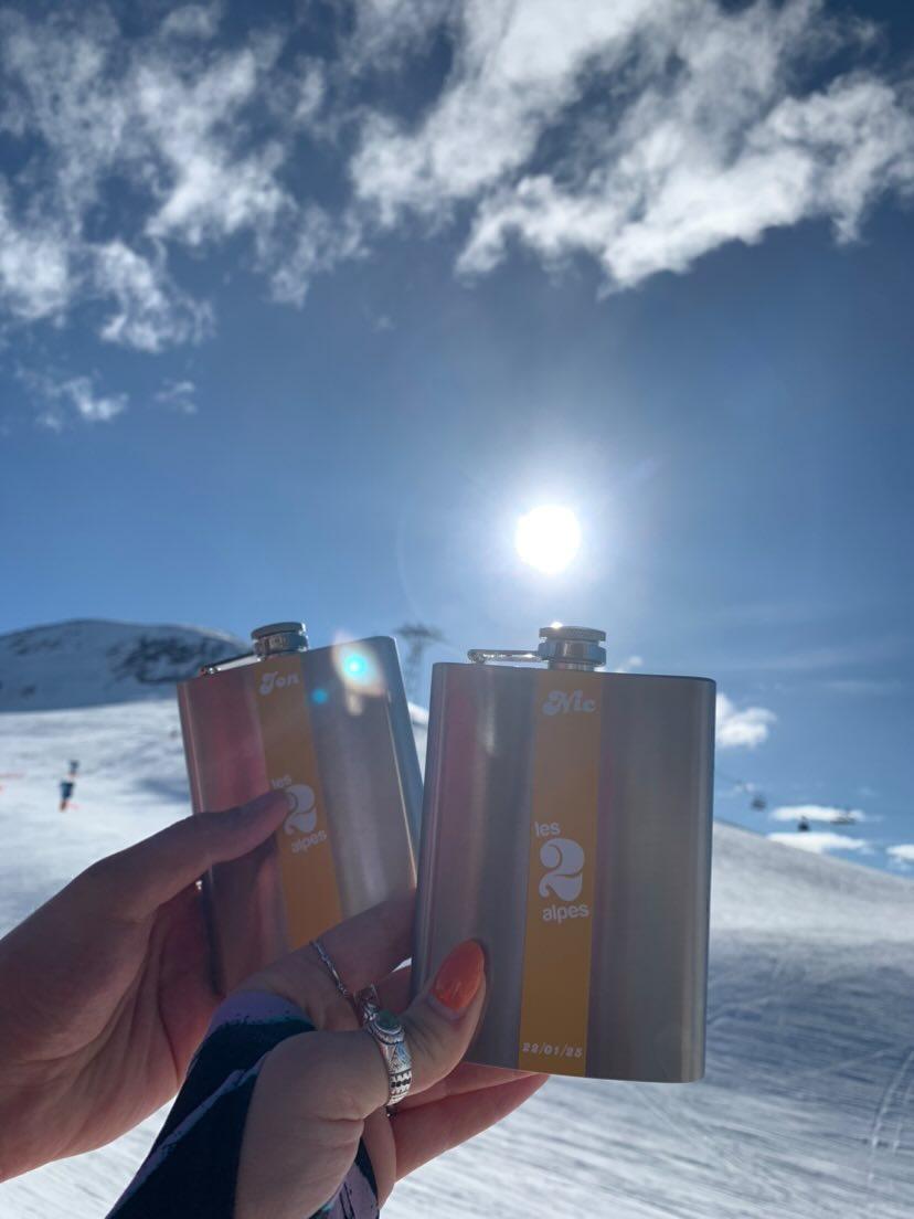 Rally your crew with matching personalised hip flasks that capture the spirit of your mountain adventure. Whether you pick one of our signature resort designs or dream up something uniquely yours, we'll bring it to life on every flask. Perfect for toasting at the summit, these stylish keepsakes ensure your group's best moments—and inside jokes—stay with you long after the slopes close for the season.
